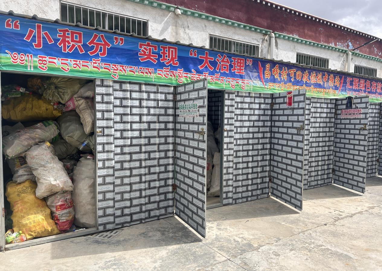 積分制促進(jìn)了社區(qū)聯(lián)結(jié)和經(jīng)濟(jì)消費(fèi),還推動了鄉(xiāng)村生態(tài)的良性治理。瓊結(jié)縣加麻鄉(xiāng)昌嘎村駐村工作隊的格桑多吉展示了“五門聯(lián)排”的可回收垃圾中轉(zhuǎn)站,“這些垃圾由村委會收集起來后統(tǒng)一送去回收,回收的資金會放在‘文化銀行’中用于購買新的積分物品。”而至于“垃圾”的來源,則依賴“綠色銀行”對村民的激勵?!鞍▔牡碾婏堨?、高壓鍋,都可以送到村委會進(jìn)行統(tǒng)一回收?!备裆6嗉榻B說,村民將分類整理好的垃圾送至“綠色銀行”,通過“兩委”班子和村務(wù)監(jiān)督委員會委員核定之后,可以根據(jù)《綠色銀行兌換項目表》直接兌換商品用于日常生產(chǎn)生活。自“綠色銀行”推行以來,昌嘎村累計兌換商品總價值6千元,讓行動變積分、積分變商品,充分調(diào)動了群眾參與鄉(xiāng)村生態(tài)建設(shè)的積極性。