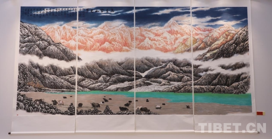 中國(guó)西藏網(wǎng)訊 9月20日,《行走在雪域的圣潔中》——楊革非中國(guó)山水畫西藏風(fēng)情專題展在西藏自治區(qū)群眾藝術(shù)館揭開(kāi)帷幕,展覽共展出楊革非創(chuàng)作的75幅反映西藏自然與人文的精品力作。