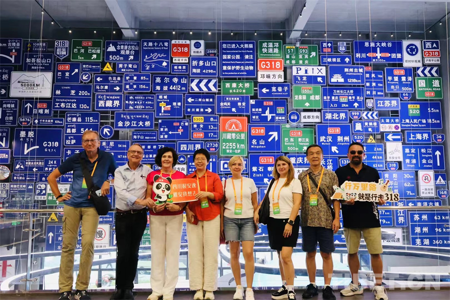 圖為國際旅行商代表團在318微型博物館內(nèi)參觀打卡