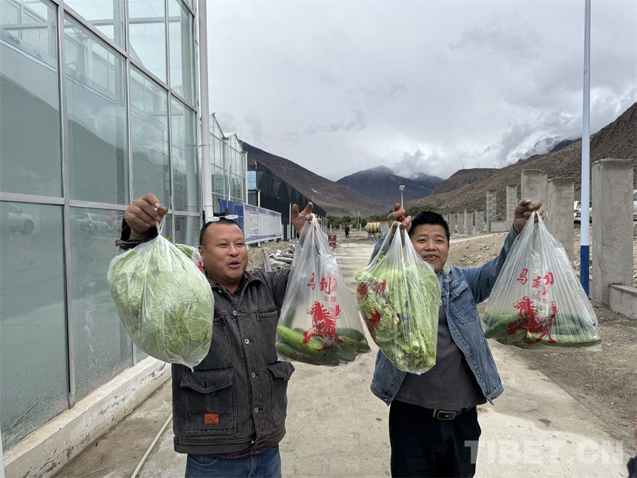 圖為八宿縣白瑪鎮(zhèn)附近的村民順路購買大棚內(nèi)成熟的蔬菜瓜果 攝影:王妍丹