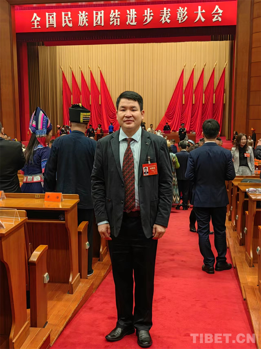 圖為丁玉珂以“全國(guó)民族團(tuán)結(jié)進(jìn)步模范個(gè)人”身份出席全國(guó)民族團(tuán)結(jié)進(jìn)步表彰大會(huì) 受訪(fǎng)者供圖