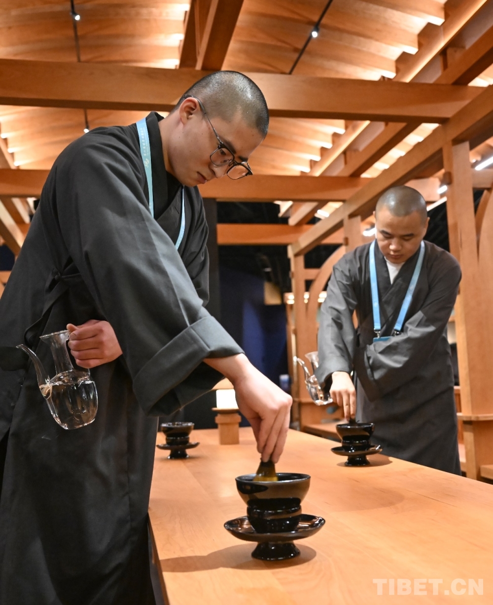 圖為與會者在“和合共生——世界佛教文化藝術展”上體驗宋式點茶