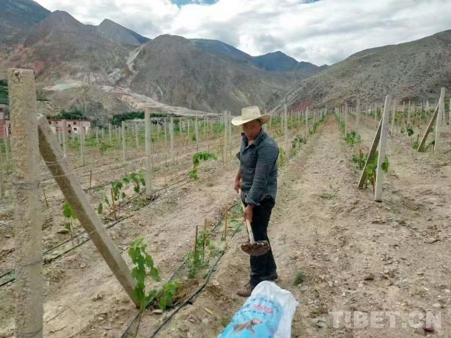 在風(fēng)景如畫的八宿縣林卡鄉(xiāng)孜嘎村,有一片占地面積200畝的葡萄種植基地,也是昌都市海拔最高的葡萄種植基地。2016年,八宿縣計劃建立葡萄種植基地,來自芒康縣納西民族鄉(xiāng)的次成江措在項目中標(biāo)后成為該基地的負(fù)責(zé)人。在次成江措的家鄉(xiāng)芒康,種植葡萄已經(jīng)有200多年的歷史。從小耳濡目染,使他成為遠(yuǎn)近聞名的葡萄種植專家。剛接到這個項目時,由于對八宿縣地理環(huán)境不甚了解,次成江措內(nèi)心并沒有十足的把握。隨后,他從家鄉(xiāng)帶來優(yōu)質(zhì)葡萄品種“黑珍珠”,驚喜地發(fā)現(xiàn)得益于八宿縣海拔較高、紫外線充足、降雨量較少的優(yōu)勢條件,“黑珍珠”的生長情況超出了他的預(yù)期,甚至不需要使用農(nóng)藥。