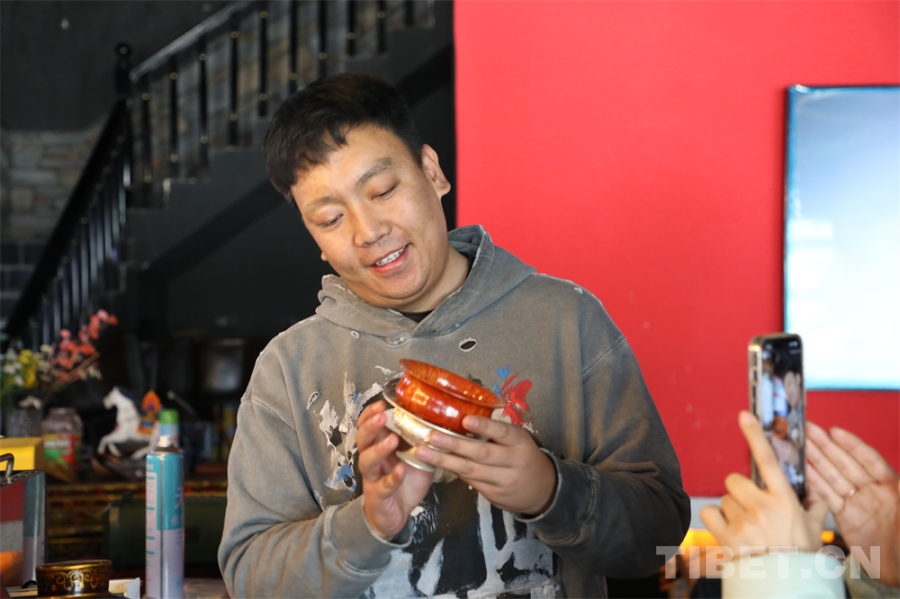 在濃郁的咖啡液里注入青稞奶,撒上當?shù)禺a(chǎn)的酸酸的奶渣和青稞?!煌胂銤獾目Х韧瓿闪恕J堑?,是“一碗咖啡”,索朗群培專門選用了藏族群眾喜愛的傳統(tǒng)木碗用作咖啡杯。