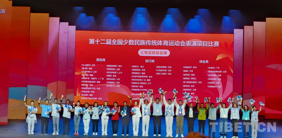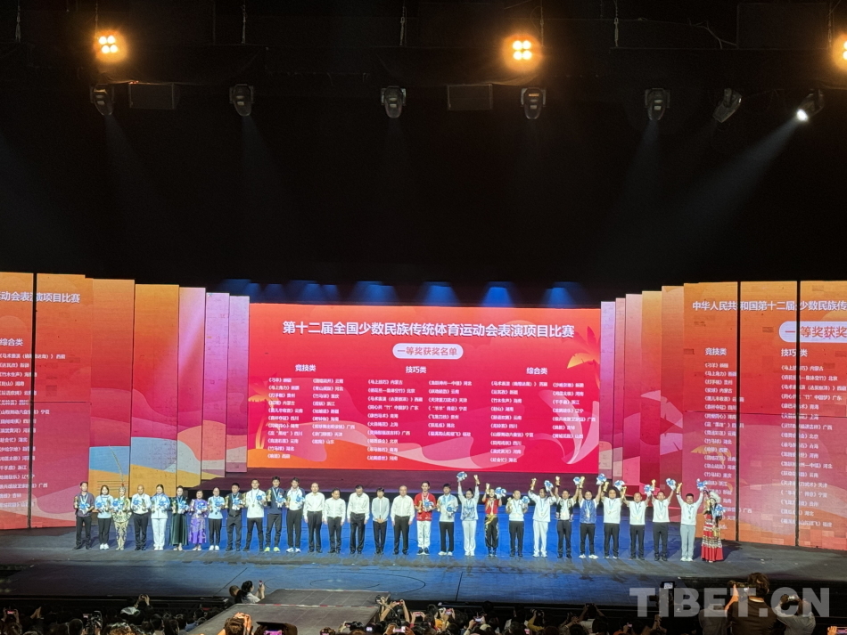 圖為第十二屆全國少數民族傳統體育運動會表演項目頒獎晚會現場 西藏自治區(qū)體育局供圖