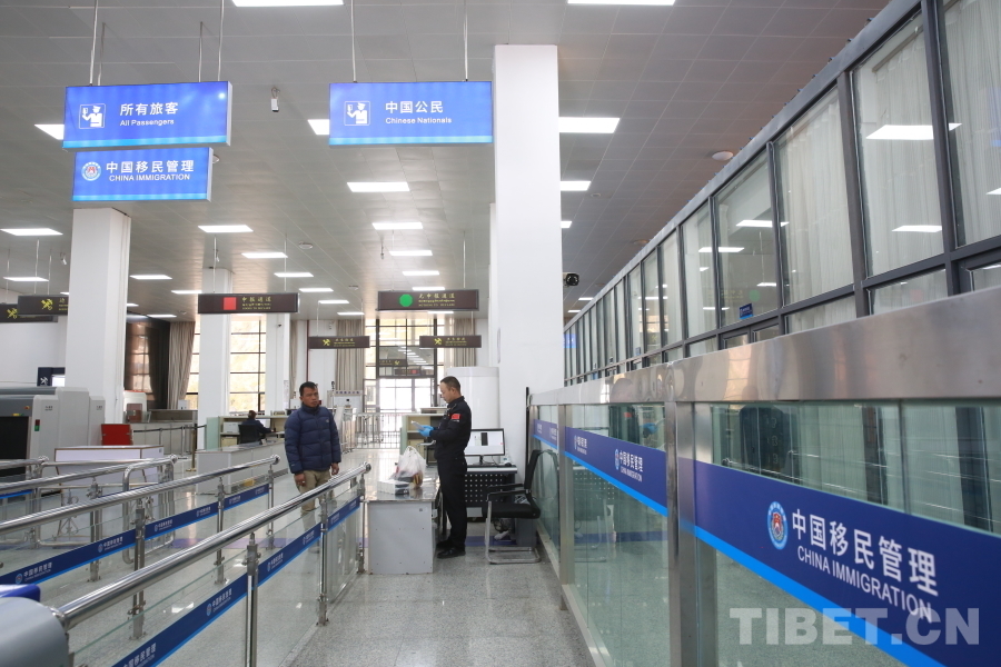 圖為12月1日,吉隆口岸聯(lián)檢大廳正式啟用新版對(duì)外開(kāi)放口岸出入境邊防檢查現(xiàn)場(chǎng)標(biāo)志 攝影:肖富貴