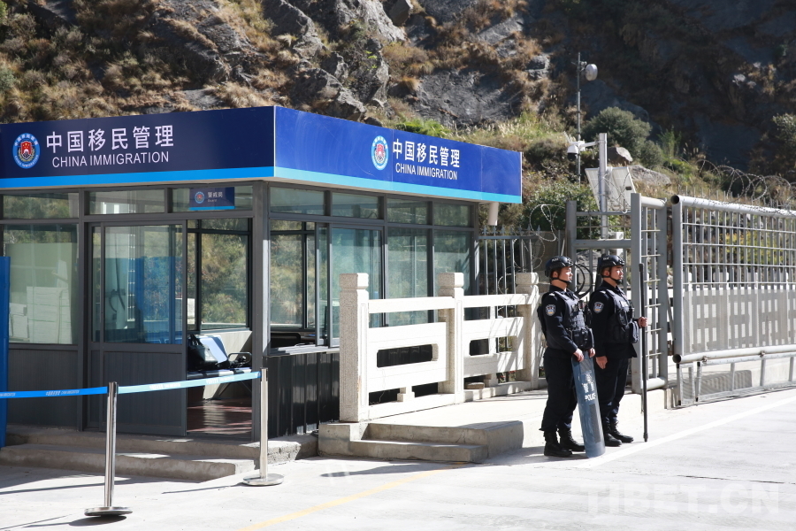 圖為12月1日,吉隆口岸執(zhí)勤現(xiàn)場(chǎng)正式啟用新版對(duì)外開(kāi)放口岸出入境邊防檢查現(xiàn)場(chǎng)標(biāo)志 攝影:肖富貴