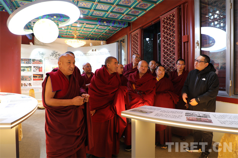 圖為西藏佛學(xué)院一行參觀西黃寺內(nèi)展覽 攝影:王茜