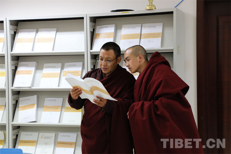 學(xué)員們在環(huán)境雅致、設(shè)施完善的中國藏語系高級佛學(xué)院圖書館里“打卡”。該圖書館擁有豐富的藏文文獻資源,為學(xué)員們提供了舒適的交流場所和學(xué)習(xí)環(huán)境。西藏佛學(xué)院的學(xué)員們也紛紛投入知識的海洋進行閱覽。