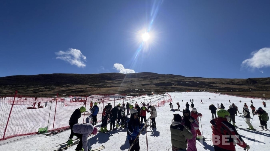 滑雪現(xiàn)場(chǎng),滑雪初學(xué)者和滑雪愛好者們佩戴頭盔,身穿滑雪服,手拄滑雪杖,腳蹬滑雪板在教練的指導(dǎo)下學(xué)習(xí)滑雪,盡情體驗(yàn)雪域高原的冰雪風(fēng)情?;┏鯇W(xué)者卓瑪在教練的耐心指導(dǎo)下不一會(huì)兒就到滑雪區(qū)域進(jìn)行實(shí)踐,下來后她說:“今天在這么好的天氣下能夠體驗(yàn)滑雪項(xiàng)目十分開心,剛才在上面我還猶豫要不要放棄,但看到那么多人大膽地滑下去,還有不少人摔了一次又一次,依舊站起來繼續(xù)滑雪,這就給了我挑戰(zhàn)的勇氣,雖然摔了幾次,但是真的好開心呀!以后想帶著朋友和家里的小孩過來體驗(yàn)。”