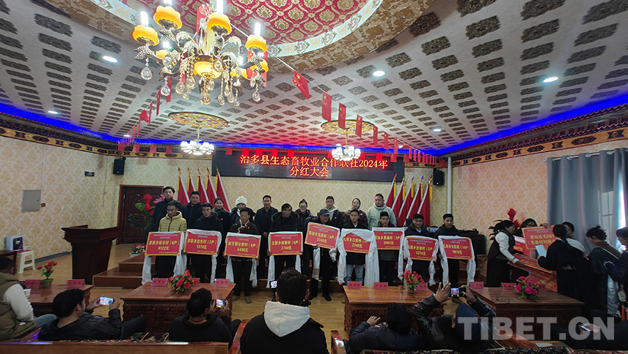 中國西藏網(wǎng)訊 12月26日,青海省玉樹藏族自治州治多縣生態(tài)畜牧業(yè)合作聯(lián)社(以下簡稱合作聯(lián)社)舉行了2024年分紅大會,為3401戶監(jiān)測戶分紅60.594萬元,治多縣農(nóng)牧和科技局、5鄉(xiāng)1鎮(zhèn)和20個(gè)行政村的負(fù)責(zé)人及入社股民代表參加。