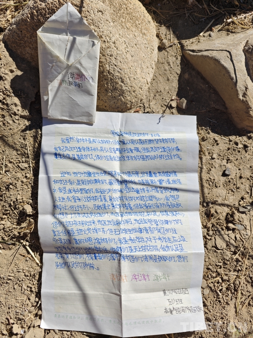 圖為阿旺吉巴給西藏自治區(qū)消防救援總隊山南增援分隊的“一封信”
