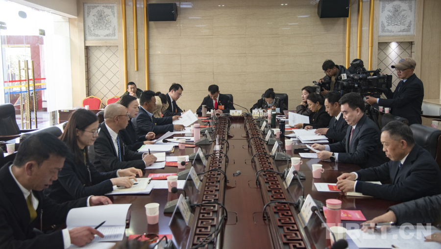 圖為政協(xié)第十二屆西藏自治區(qū)委員會第三次會議新聞出版和社會科學界委員小組討論會現(xiàn)場(攝于1月18日)攝影:趙振宇
