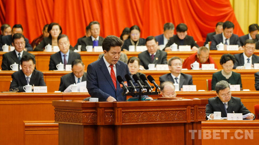 中國西藏網(wǎng)訊 1月20日,西藏自治區(qū)第十二屆人民代表大會第三次會議舉行第二次全體會議,全國人大常委會副委員長、西藏自治區(qū)人大常委會主任洛桑江村受西藏自治區(qū)人大常委會委托,作西藏自治區(qū)人民代表大會常務(wù)委員會工作報告。