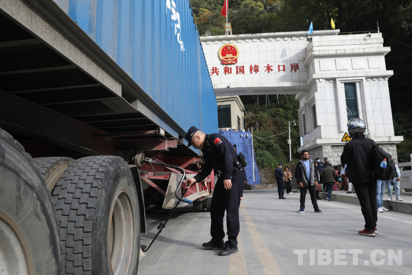 圖為聶拉木出入境邊防檢查站執(zhí)勤民警查驗(yàn)車(chē)輛 攝影:郭遠(yuǎn)敬