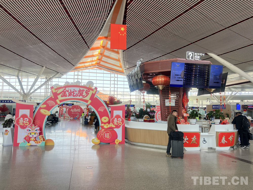 中國西藏網(wǎng)訊 新春的樂章即將奏響,拉薩貢嘎國際機場盛裝以待,用別出心裁的春節(jié)景觀設計,為過往旅客呈上一場充滿新意的新春盛宴,讓節(jié)日的喜慶在旅途中盡情流淌。(中國西藏網(wǎng) 記者/趙振宇)