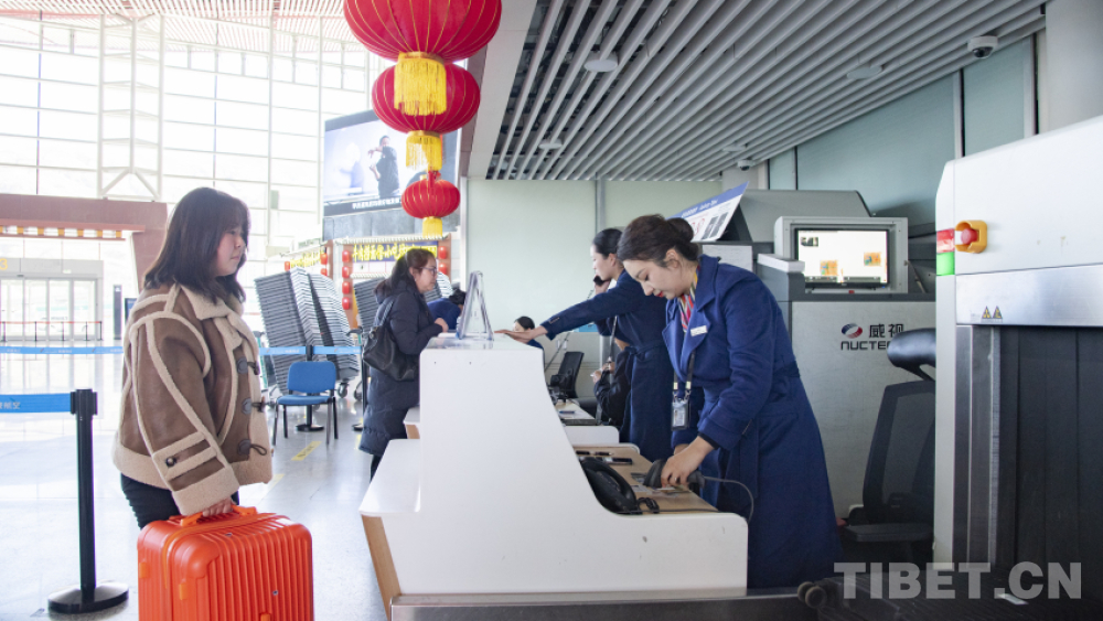 “您好,先生,請問您乘坐藏航哪趟航班?請出示您的身份證。您有托運行李嗎?托運行李中有鋰電池、充電寶嗎?這些是不能托運的,只能隨身攜帶。請拿好您的登機牌。再見,祝您歸途愉快!”1月25日,記者在拉薩貢嘎國際機場T3航站樓G島柜臺,見到了西藏航空公司拉薩基地值機服務隊隊長次仁卓嘎。