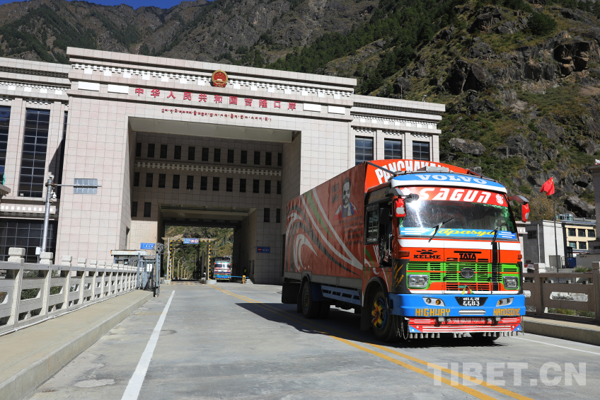 資料圖:尼泊爾貨車從吉隆口岸國(guó)門經(jīng)過(guò) 攝影:肖富貴