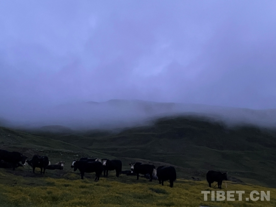 過了一會兒,天邊漸漸卷起了一個白邊,然后越來越大。后來,遠處的山、河、帳篷、牛羊都逐漸清晰了。這時,我們的工作也接近尾聲。一回頭,看到我家?guī)づ耥數(shù)臒焽枥锷鹆搜U裊炊煙,我知道,爸爸已經(jīng)準備好了早餐,等著我們回家了。(中國西藏網(wǎng) 實習(xí)生/扎西央措)