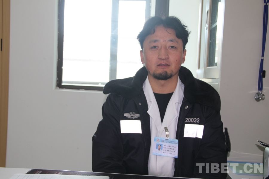 中國西藏網(wǎng)訊 雪白的大褂外披一件藏藍(lán)色冬裝便衣,這便是瑪曲縣阿萬倉中心衛(wèi)生院的執(zhí)業(yè)醫(yī)師楊長才旦。他的胸牌上寫著“科室:洛隆村衛(wèi)生室”,表明他是鎮(zhèn)上五個大隊其中之一的村醫(yī),集中在中心衛(wèi)生院輪班為病患看診。