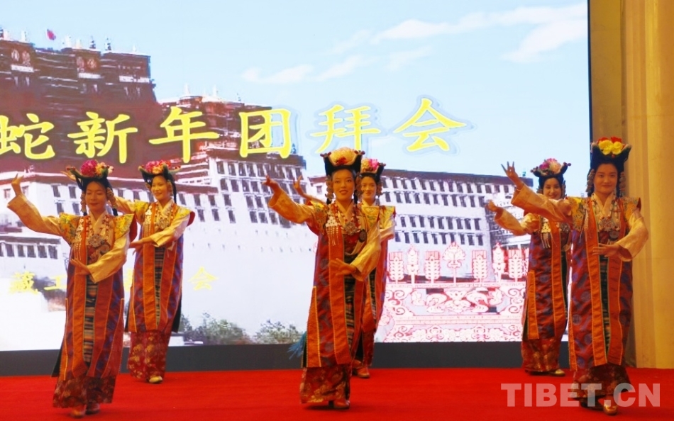 隨著拉薩城關區(qū)娘熱民間藝術團的歌舞表演開始,《祝?!窐仿曈茡P,團拜會正式拉開帷幕?!袄习嚅L”葉鵬穿上自己的綠軍裝重新演繹民族團結與軍民深情的經(jīng)典歌舞《洗衣歌》;青少年學生們和著優(yōu)美的旋律,以歡快的舞步跳起《崗巴拉姆》,點燃了現(xiàn)場氣氛;一級演員劉媛媛演唱的《五星紅旗》《國家》飽含深情,北京首都軍之魂合唱藝術團的大合唱《共筑中國夢》《走向復興》慷慨激昂,表達了大家對祖國的熱愛……還有悠揚的扎木念表演、男聲獨唱等節(jié)目豐富精彩。大家在歡聲笑語中共同感受著節(jié)日的喜悅,共同祝愿西藏在新的一年里再創(chuàng)輝煌,共祝西藏各族人民幸福安康,羅薩扎西德勒。(中國西藏網(wǎng) 記者/王茜 實習生/扎西央措)