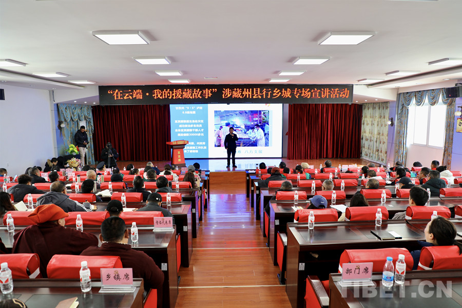 中國(guó)西藏網(wǎng)訊 2月27日上午,“在云端·我的援藏故事”涉藏州縣行宣講活動(dòng)走進(jìn)四川省甘孜藏族自治州鄉(xiāng)城縣。宣講團(tuán)隊(duì)的七位成員以“金牛幫扶聚云端 巾幗情灑扎溪卡”“那片深愛(ài)的土地”“愛(ài)心支教行,共筑成長(zhǎng)夢(mèng)——為了使命的遠(yuǎn)行”等主題,滿懷深情地向當(dāng)?shù)馗刹咳罕娭v述他們的故事。