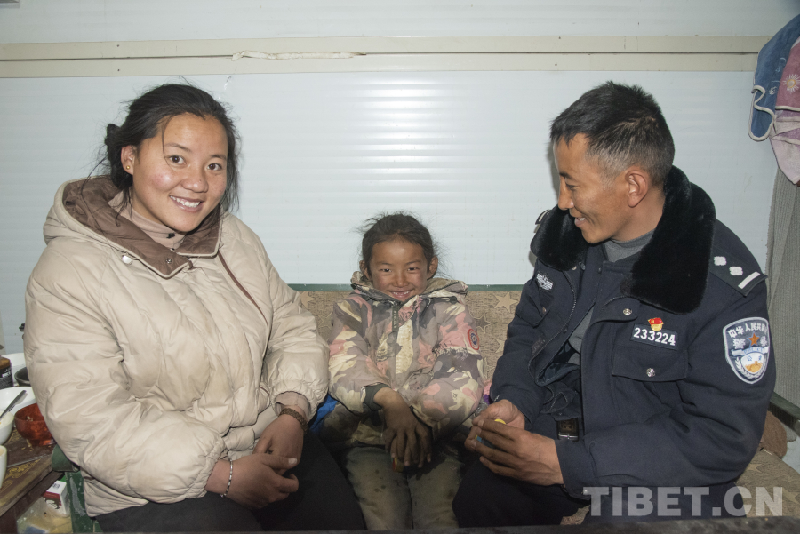 “我的小兒子扎西羅布性格比較內向,現在正在讀小學四年級,我擔心他到縣里讀書會不適應?!卑⒓迅裆A訴著自己的擔心,村干部和民警耐心地向她介紹情況。