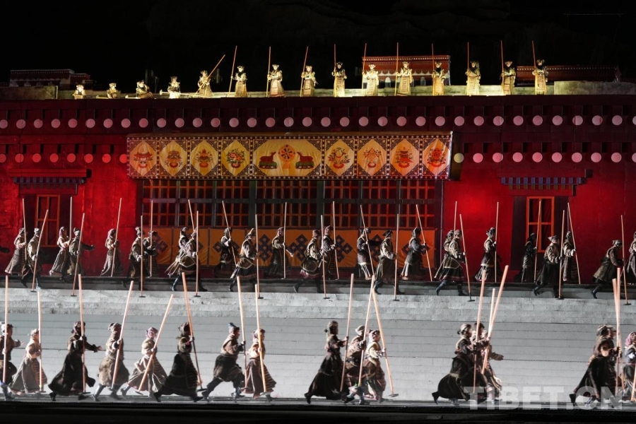 圖為《文成公主》大型實(shí)景劇中群眾演員正在表演。攝影:德吉卓瑪