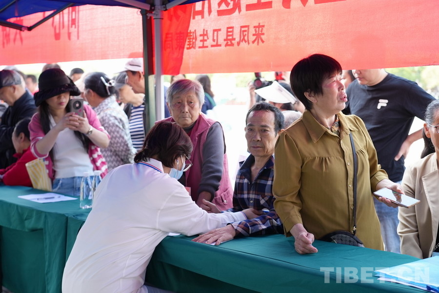 中國西藏網訊 4月18日,“同心·共鑄中國心”大型公益醫(yī)療服務活動走進湖北省恩施土家族苗族自治州來鳳縣。來自北京的10名醫(yī)療專家組成的聯(lián)合義診團隊,在喳西泰廣場為當?shù)厝罕娞峁┙】底稍儭⒓膊『Y查及個性化診療服務。活動現(xiàn)場,專家們耐心解答群眾健康問題,針對常見病、慢性病進行細致篩查,并提出專業(yè)診療建議。(中國西藏網 記者/蘇洋)