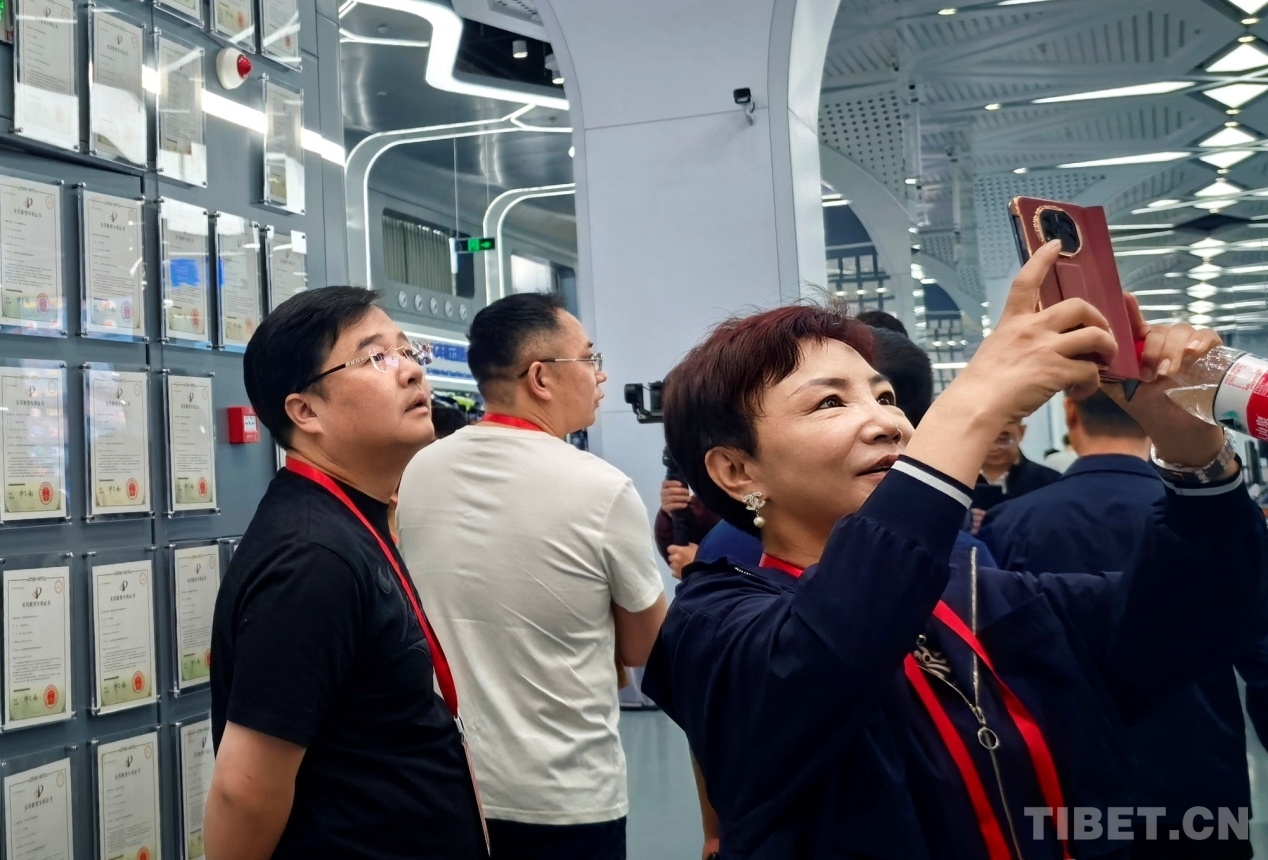 圖為全國(guó)政協(xié)委員、西藏自治區(qū)工商聯(lián)副主席、西藏青年企業(yè)家商會(huì)會(huì)長(zhǎng)、西藏眾源建材集團(tuán)有限公司董事長(zhǎng)卓嘎(右一)在北方國(guó)際汽車教育展廳+實(shí)操教室拍攝發(fā)明專利證書(shū) 攝影:劉莉