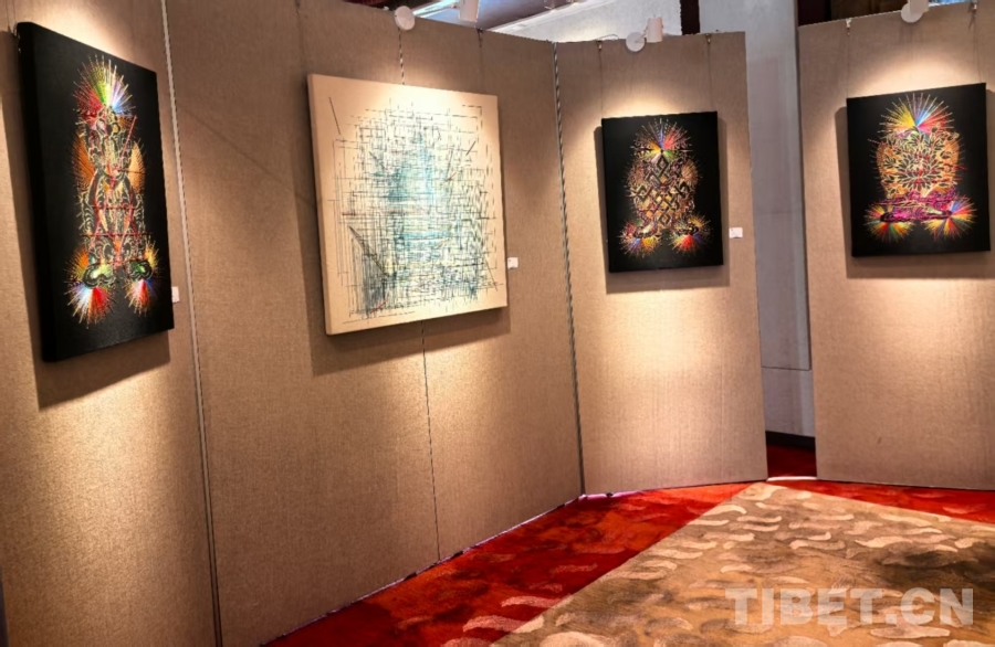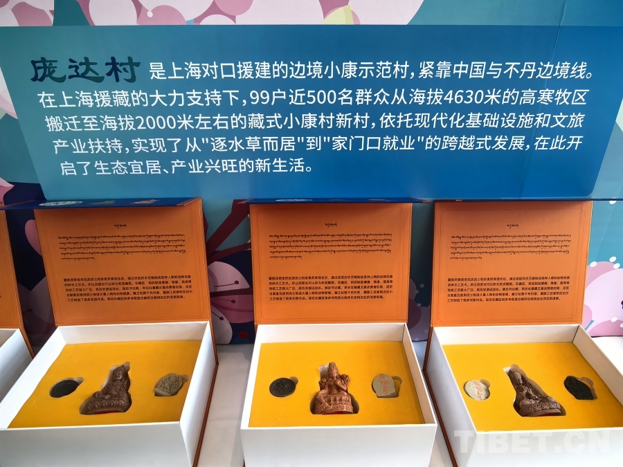 圖為5月2日至8日舉行的“三國同框 四季如畫 五彩亞東——亞東縣文化交流及特色產(chǎn)品展銷活動(dòng)”上索喃次仁的作品展區(qū) 攝影:王淑