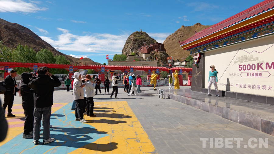 日喀則市拉孜縣強公村位于318國道5000公里處,這里是游客們前往珠峰景區(qū)的必經之地,也被稱為“3185旅游服務區(qū)”。日前,記者在這里看到,有大批游客選擇在村口的318國道5000公里紀念碑前打卡。