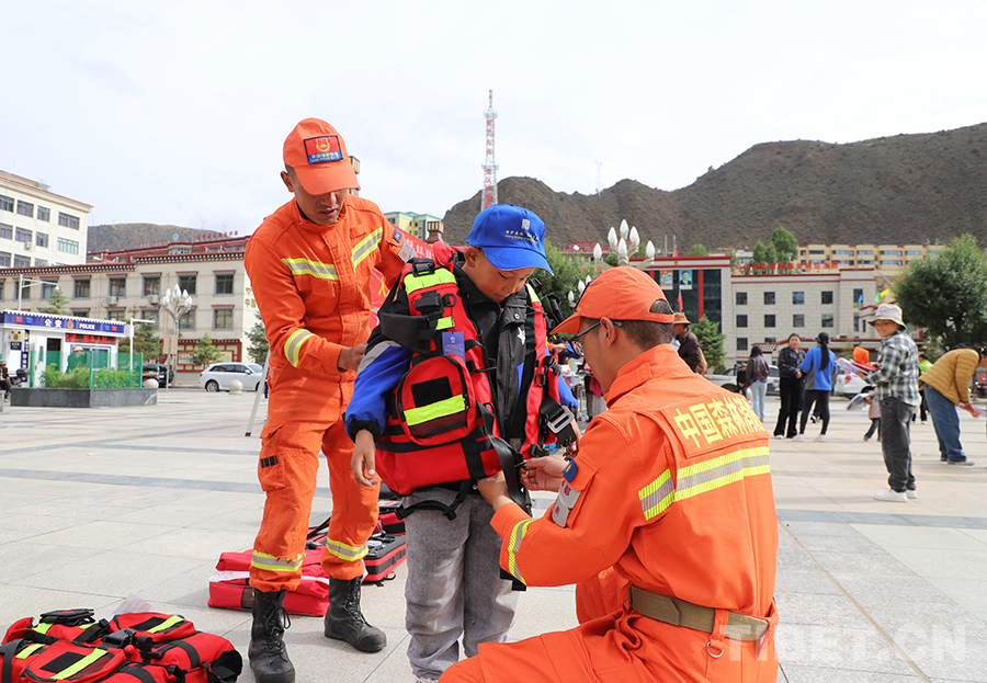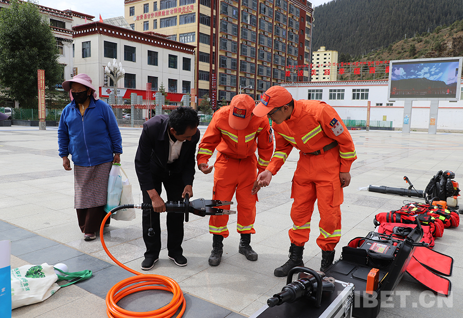 “這是我們最新配發(fā)的液壓擴張器和液壓剪切器,主要用于打開救援通道……”在裝備展示區(qū),消防員土登旺堆正在為群眾詳細講解液壓剪切器、液壓頂撐器、生命探測儀等各類救援裝備的特點和使用方法,并邀請群眾進行親身體驗。