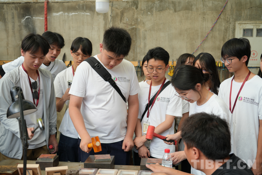 中國(guó)西藏網(wǎng)訊 7月17日,2025澳門青少年青海研學(xué)團(tuán)的同學(xué)們走進(jìn)位于青海省西寧市湟中區(qū)魯沙爾鎮(zhèn)的陽坡銀銅器加工產(chǎn)業(yè)園,在一錘一鏨中感受傳統(tǒng)技藝的魅力。