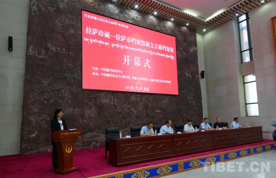 中國西藏網訊7月30日,“拉薩珍藏——拉薩市檔案館藏文古籍檔案展”在西藏文化博物館開幕。中國藏學研究中心黨組書記陳宗榮出席并宣布展覽開幕,中國藏學研究中心副總干事扎洛、拉薩市檔案館館長桑榮瑞分別致辭。國家民委、中國社會科學院、國家檔案局、中國第一歷史檔案館、中國國家版本館、西藏自治區(qū)檔案局、拉薩市檔案館等單位有關代表,中國藏學研究中心各部門負責同志,受邀觀眾、志愿者參加開幕式。中國藏學研究中心圖書館負責同志主持開幕式。