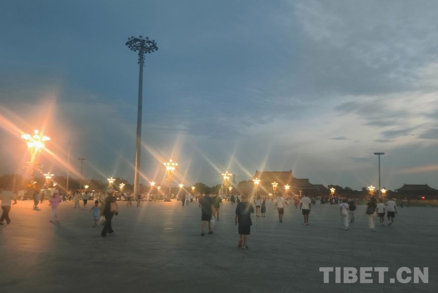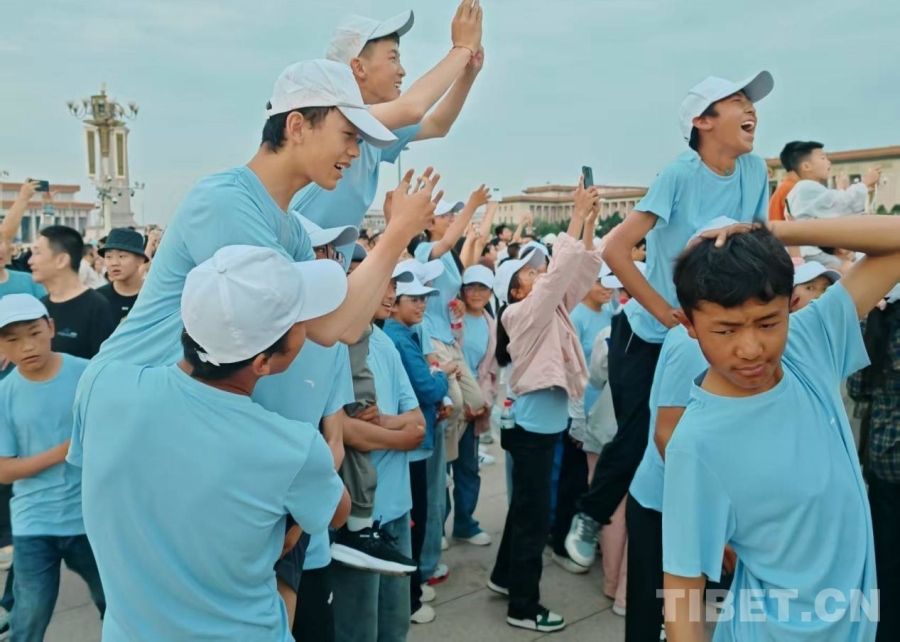 暑期的天安門廣場更加熱鬧,不僅有一家老幼同游的家庭,有旅行社帶來的各地旅游團(tuán),最多的是各種學(xué)校、團(tuán)體組織的大大小小的學(xué)生團(tuán),他們身著不同顏色款式的服裝,共同等待著激動人心的時(shí)刻?!吧胶油}·京華筑夢”研學(xué)團(tuán)的少年們便是其中一員,他們穿著淺藍(lán)色的T恤,戴著白色的棒球帽,散發(fā)著西藏少年的朝氣。