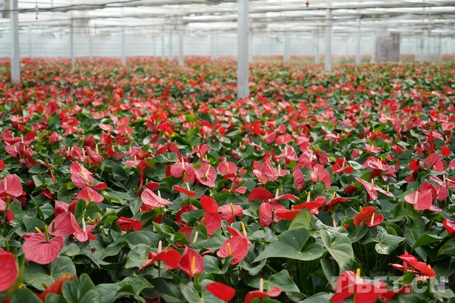 文成公主種下民族團結的種子,在今天依舊開出鮮艷的花。才納園區(qū)總投資6億元,其中江蘇援藏資金1.5億元。紅掌花卉基地就是江蘇省泰州市產業(yè)援藏的一個典范,基地由泰州國有企業(yè)蘇中園藝公司和才納園區(qū)合作建設,總面積16畝,溫室規(guī)模1萬余平方米,年可生產鮮花10萬盆。