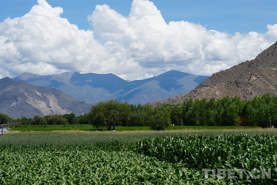 在才納園區(qū)大田試種區(qū)域,河南農業(yè)大學農學院楊建平教授的科研助理王永峯正在觀察玉米和小黑麥的生長情況。一望無際的玉米、小黑麥,株株都有一人高,綠油油的,和遠處的青山、藍天、白云相映成趣。