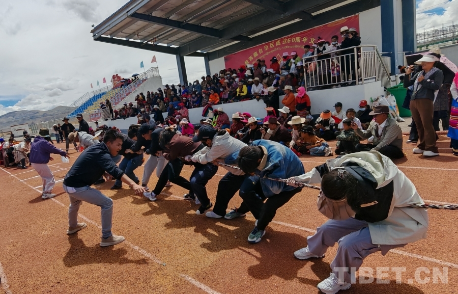 文藝演出落幕,文體活動接棒升溫。100米、200米賽道上,選手們?nèi)珉x弦之箭,奔跑中揚(yáng)起的塵土里;拔河繩兩端,隊員們腳蹬大地、身向后仰,加油的號子聲震得地上的石子都在跳;抱沙袋、押加項目中,選手們咬緊牙關(guān)、全力拼搏,圍觀群眾的吶喊助威聲浪一波高過一波;穿藏服拌糌粑環(huán)節(jié),大家整理衣襟、系緊腰帶,青稞粉與礦泉水在手中交融,香氣里飄著“共話家?!钡臏厍椤宽椈顒佣际且淮巍靶呐c心的對話”,讓團(tuán)結(jié)的種子在互動中生根發(fā)芽。