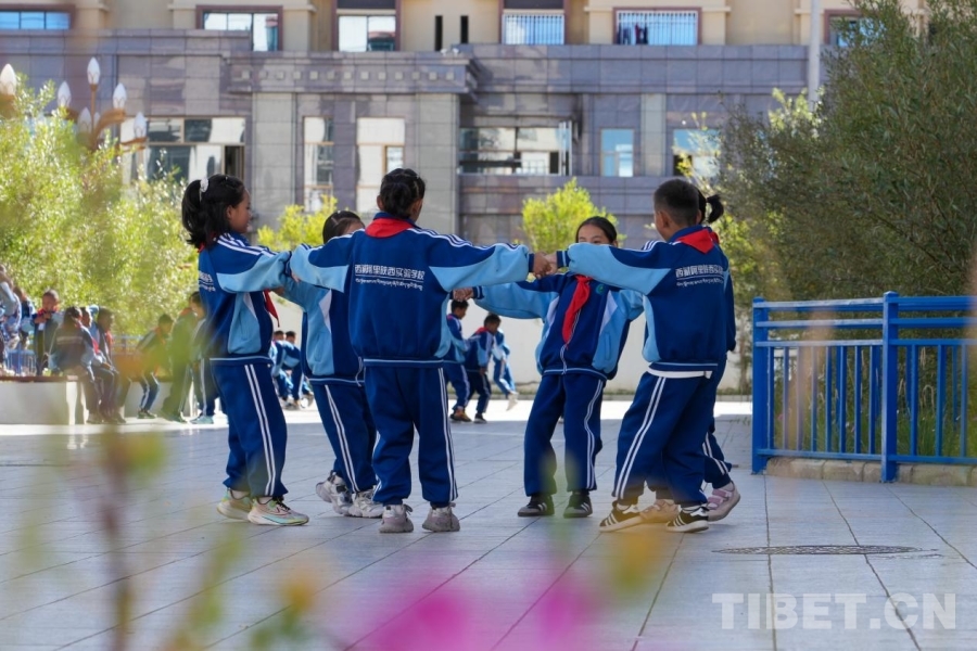 圖為在西藏阿里陜西實(shí)驗(yàn)學(xué)校,孩子們在課間嬉戲 攝影:邊子捷
