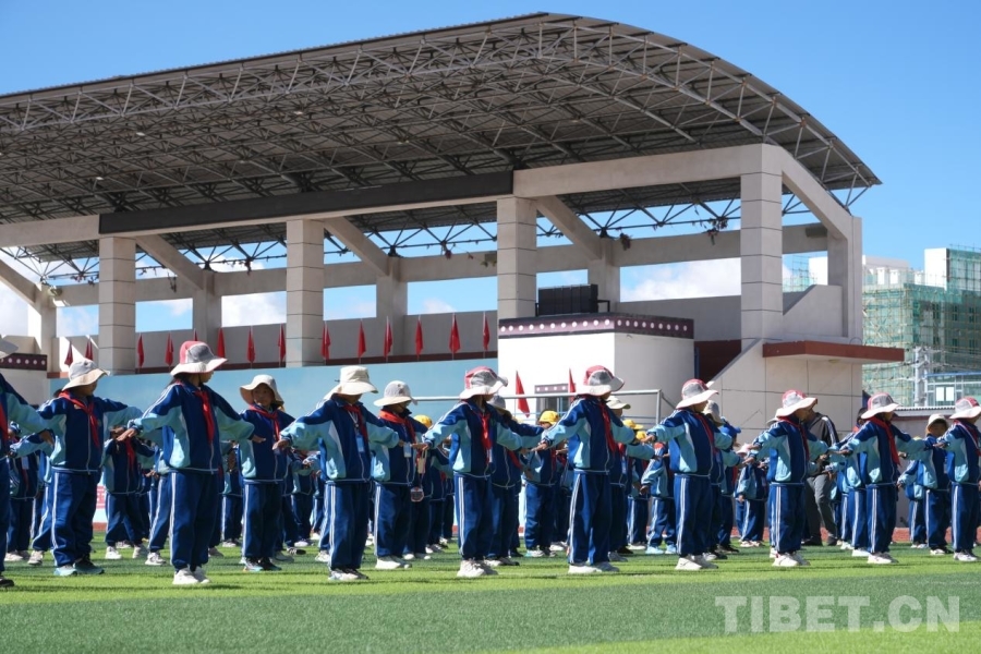圖為在西藏阿里陜西實(shí)驗(yàn)學(xué)校操場,孩子們列隊(duì)做操 攝影:邊子捷