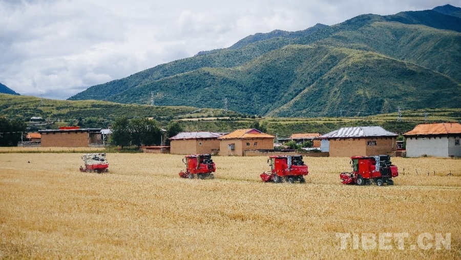 圖為機械化青稞收割現場