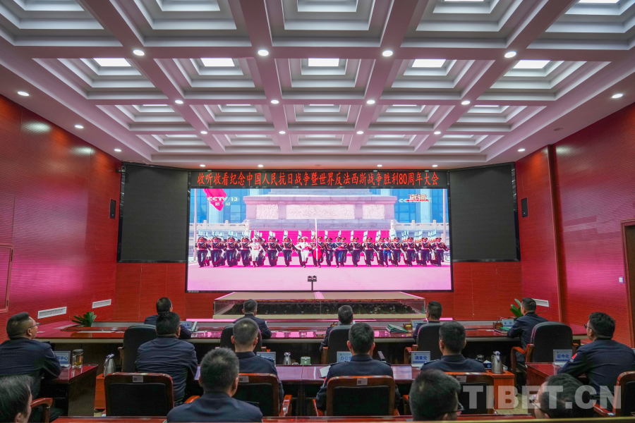 圖為日喀則邊境管理支隊(duì)機(jī)關(guān)組織民警收聽收看紀(jì)念中國(guó)人民抗日戰(zhàn)爭(zhēng)暨世界反法西斯戰(zhàn)爭(zhēng)勝利80周年大會(huì) 攝影:葉軼