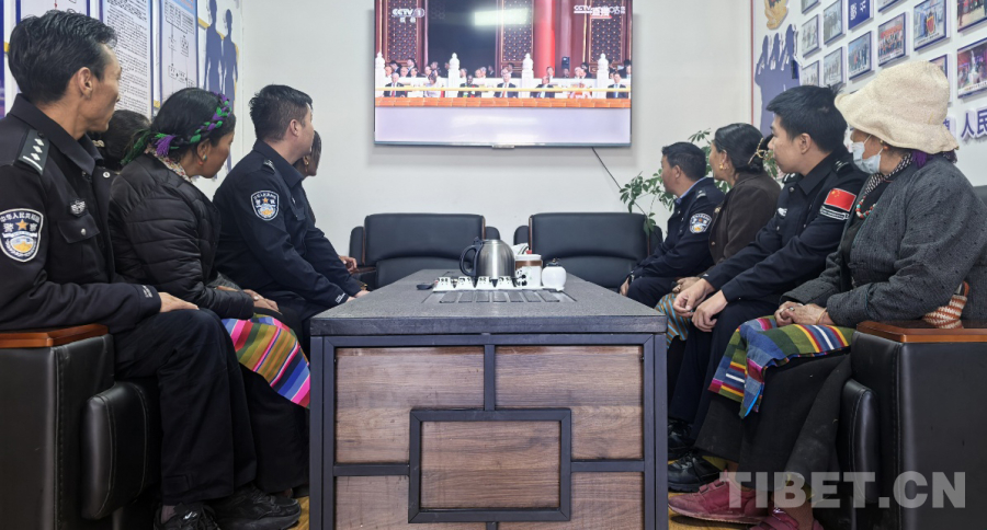 圖為日喀則邊境管理支隊(duì)仲巴邊境管理大隊(duì)帕羊邊境派出所與駐地人民政府聯(lián)合觀看紀(jì)念中國(guó)人民抗日戰(zhàn)爭(zhēng)暨世界反法西斯戰(zhàn)爭(zhēng)勝利80周年大會(huì) 攝影:次仁旺堆