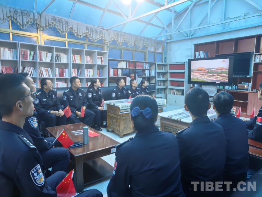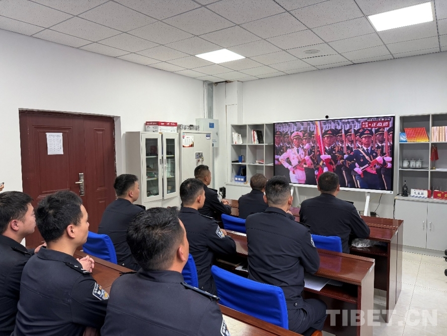圖為日喀則邊境管理支隊(duì)康布邊境派出所組織全體民警觀看紀(jì)念中國(guó)人民抗日戰(zhàn)爭(zhēng)暨世界反法西斯戰(zhàn)爭(zhēng)勝利80周年大會(huì) 攝影:周偉