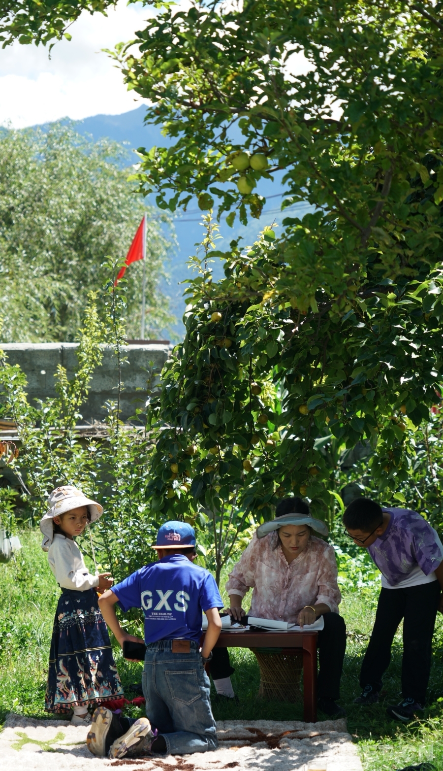 “你看,那棟帶花園的就是次仁羅布家?!表樦v村第一書記任東振手指的方向,一棟新房在陽光下熠熠生輝。院子里花團錦簇,梨花樹下,女主人尼瑪曲珍正陪孩子們寫作業(yè),陽光透過樹葉的縫隙灑下,歲月靜好。