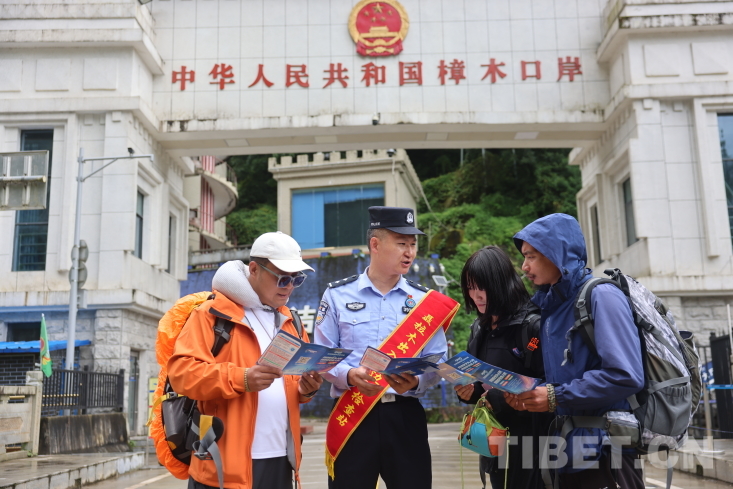 圖為聶拉木邊檢站民警向口岸群眾講解網(wǎng)絡(luò)安全知識(shí)