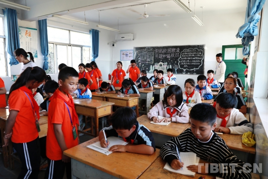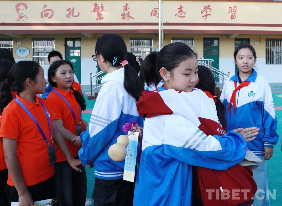中國(guó)西藏網(wǎng)訊 9月25日,西藏自治區(qū)阿里噶爾縣孔繁森小學(xué)的師生來到位于山東省聊城市的堂邑鎮(zhèn)中心小學(xué)開展聯(lián)誼活動(dòng)。堂邑鎮(zhèn)是孔繁森同志的故鄉(xiāng)。兩所學(xué)校的孩子們一起瞻仰孔繁森同志事跡、一起做游戲、同唱中國(guó)少年先鋒隊(duì)隊(duì)歌、共繪迎國(guó)慶主題畫卷……結(jié)下了深厚的情誼。