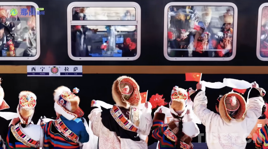 圖為首批旅客在雁石坪乘降所乘車(chē)遠(yuǎn)行 圖源:那曲融媒