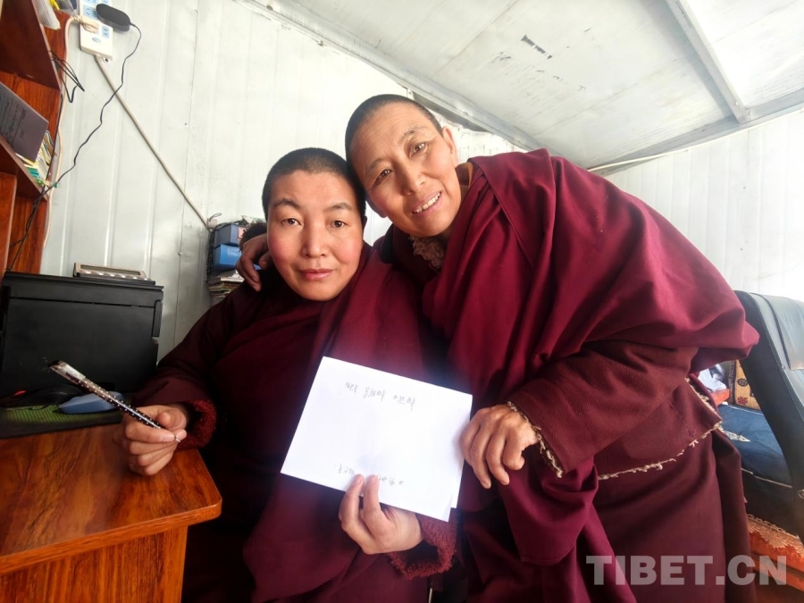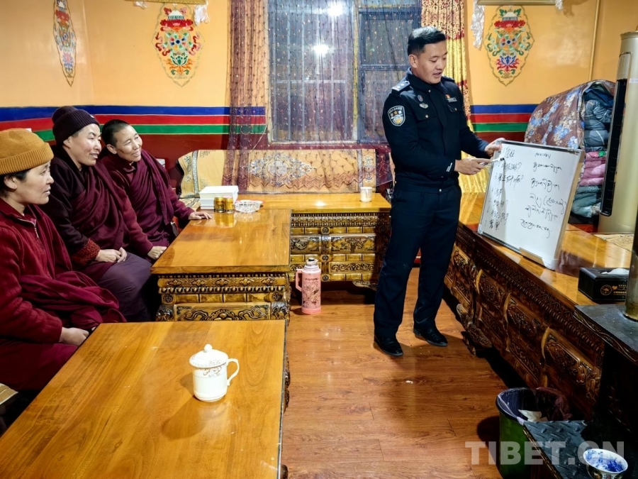 圖為民警更丁丁久為帕巴寺尼姑們開展國(guó)家通用語言文字學(xué)習(xí)培訓(xùn)